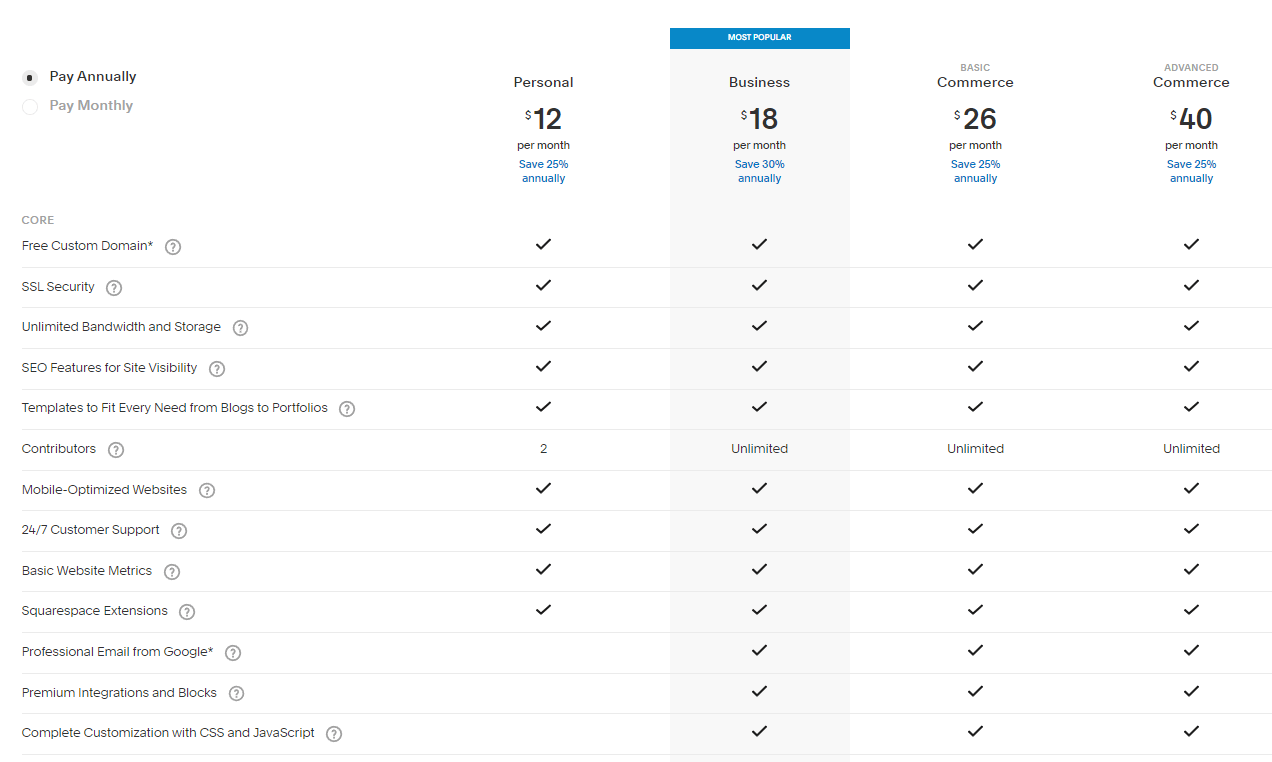 Squarespace’s pricing sits somewhere in the upper-middle average among its competitors.